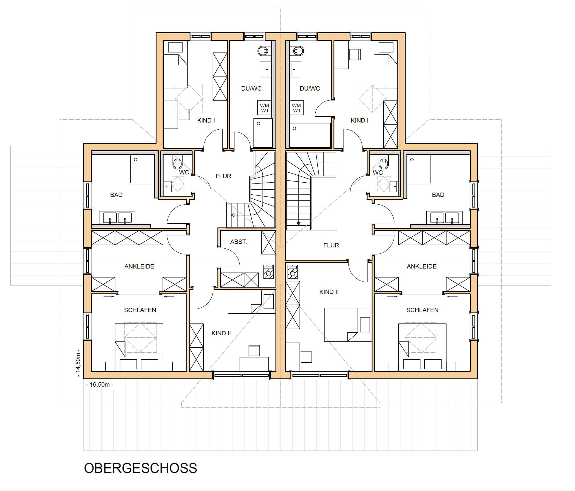 Das Blockhaus Bad Reichenhall ist als Doppelhaus in massiver Holzbauweise realisiert. Die beiden Haushälften sind identisch aufgebaut und bieten jeweils rund 250 m² Wohnfläche. Pro Einheit stehen sechs Zimmer und drei Bäder zur Verfügung. Damit eignet sich das Gebäude sowohl für große Familien als auch für Mehrgenerationenkonzepte oder Wohnen und Arbeiten unter einem Dach.